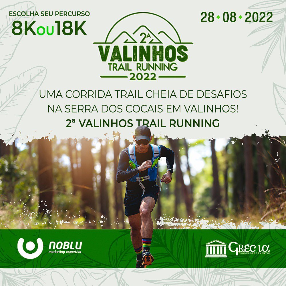 Inscrições até o dia 21/08, através do link https://www.ticketsports.com.br/e/2%c2%aa+VALINHOS+TRAIL+RUNNING-32395