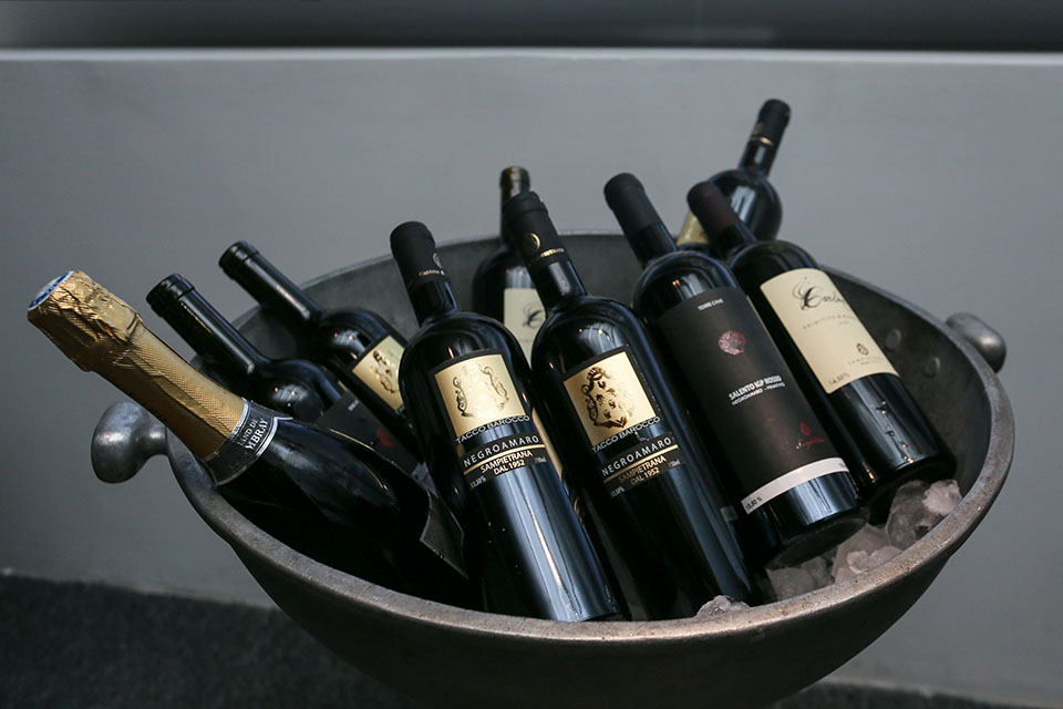 Dente os rótulos apresentados estão o Negroamaro di Salento Tacco Barocco, cujo sabor é encorpado com os taninos macios, o Salento Rosso Terre Cave, que apresenta um sabor intenso, quente e macio, e o Primitivo di Manduria Carlone, com sabor mais delicado, harmônio e tânico.