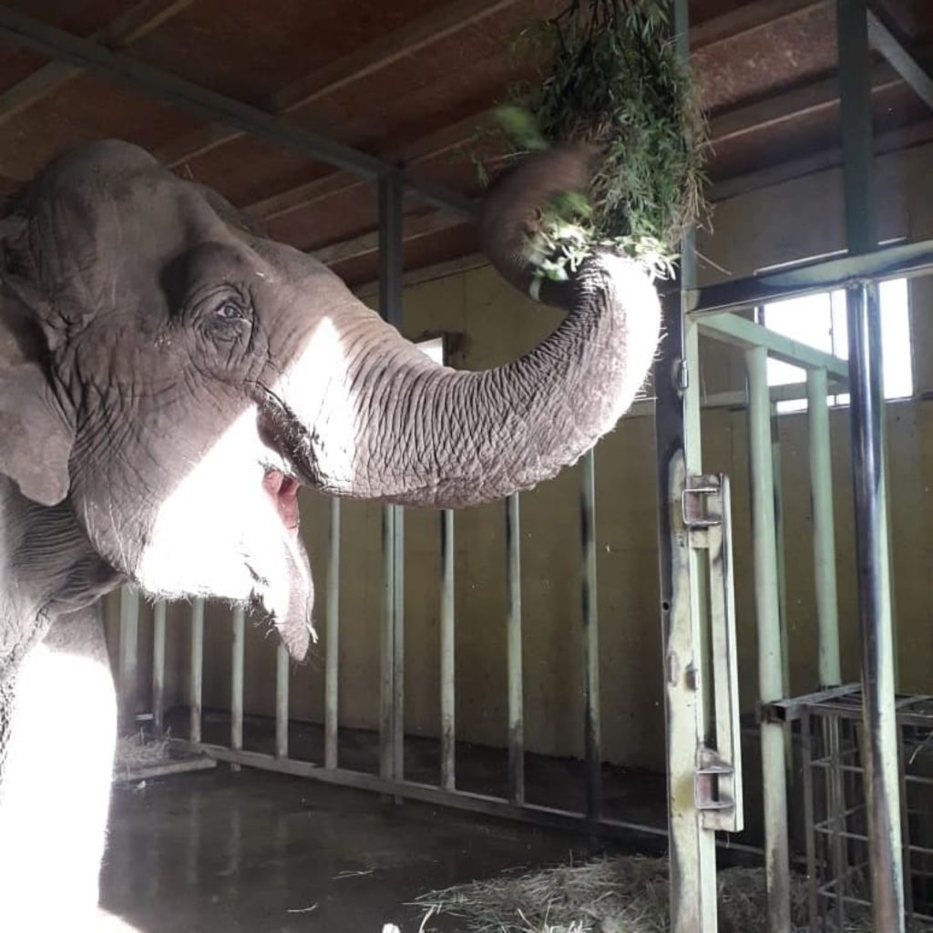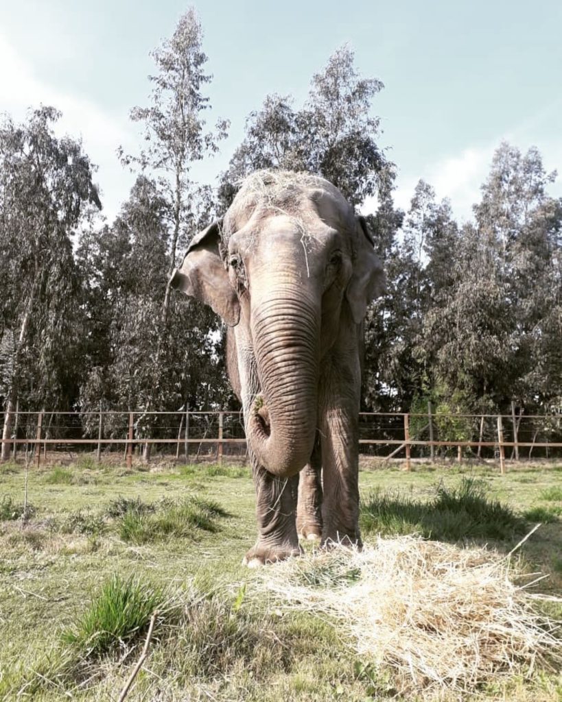A fêmea de 53 anos tem uma história de vida muito sofrida durante os anos que fazia parte de um circo chileno. Por três décadas ela viajou acorrentada em caminhões para poder ser uma das atrações do circo. Somente em 1997 o animal foi resgatado pelo Serviço Agrícola e Pecuário do Chile devido à denúncias de maus tratos e negligências.