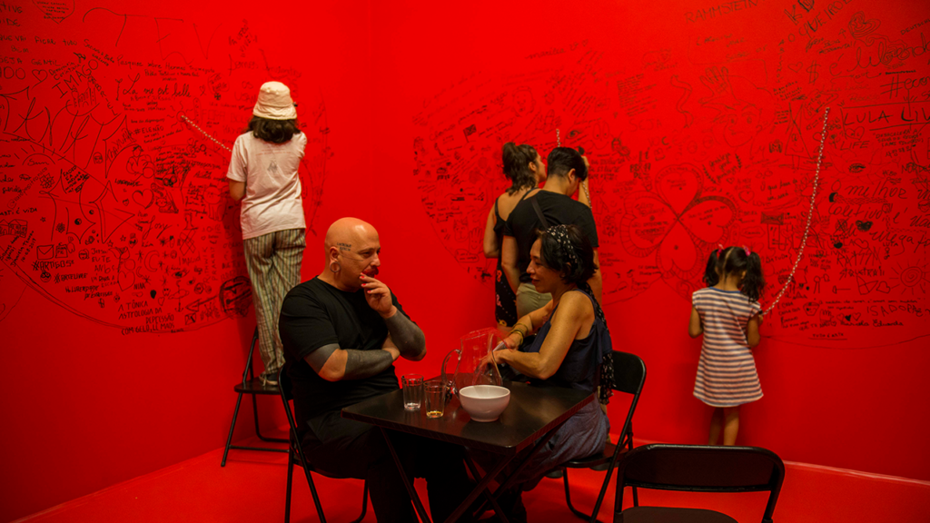 A sua visita nessa exposição será diferente de todas as outas, pois a maioria das obras vão depender de você para fazer sentido. Portanto é essa a ideia que o “Somos muit+s ” quer passar, ou seja, a arte não se faz sozinha. Ela surge e depende da coletividade para continuar se reverberando por aí.