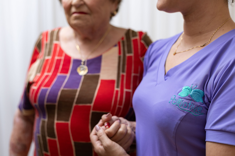 A paciente Meire Cunha (nome fictício), de 83 anos, tem Alzheimer e a perenidade das cuidadoras é uma condição fundamental para o seu bem-estar. Sua filha Silvana Cunha (nome fictício), administradora de empresas, conta que requereu da Palliative Care um perfil específico de cuidadoras. “Eu pedi profissionais responsáveis, maduras e com a vida estabilizada para diminuir riscos de ausência do trabalho. E solicitei também que fossem cristãs para conversarem com a minha mãe, que sempre esteve à frente de uma instituição religiosa e gosta de conversar sobre isso. Faz quase três anos que somos atendidos pela Palliative Care e estamos muito satisfeitos. São cuidadoras atentas às demandas e que nunca nos deixaram na mão”, entusiasma-se Silvana.